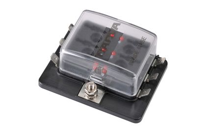 6-WAY STANDARD ATS FUSE BOX WITH LED FAULT INDICATORS, SINGLE POWER-IN TERMINAL (Blister