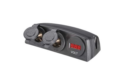 Heavy-Duty Twin Surface Mount Accessory Sockets and 12/24V DC LED Volt Meter